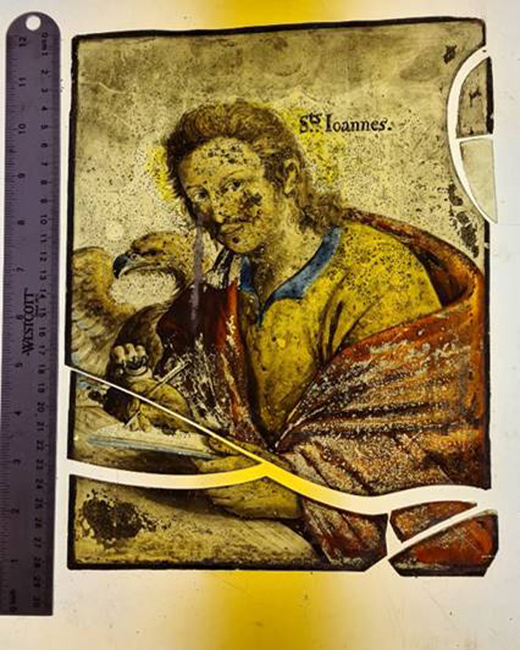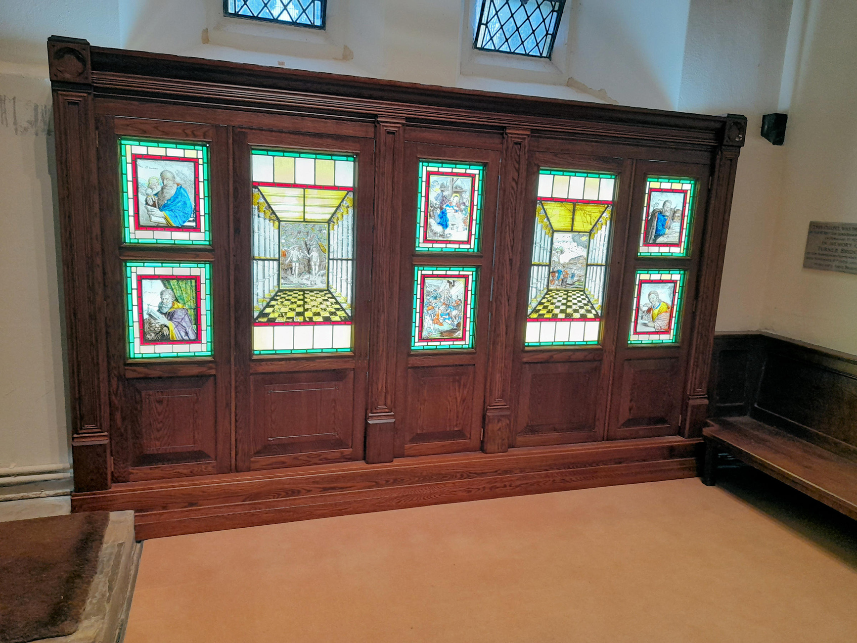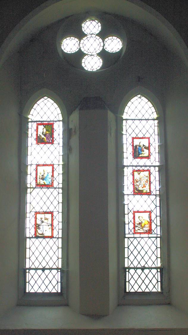 The panels were moved to the West Windows when the church was rebuilt in 1870