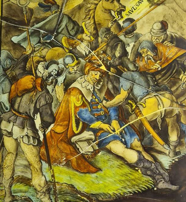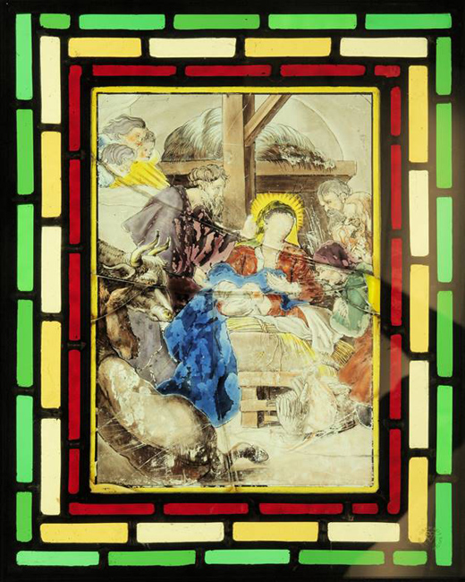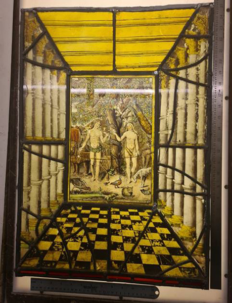 Some of the original panels were repaired with lead cames