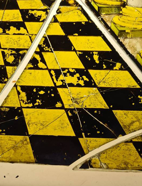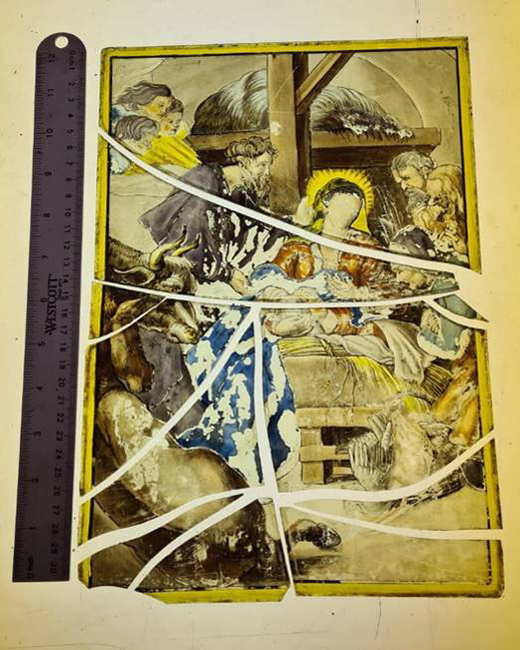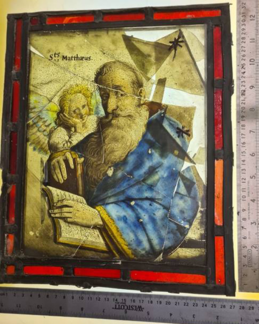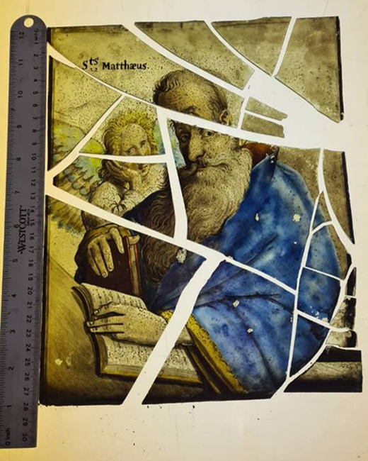 The damaged panels were glued to plain glass to hold them together.
