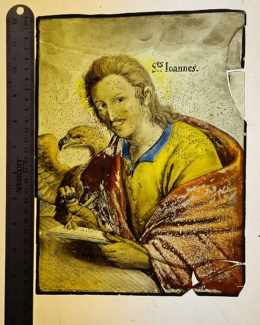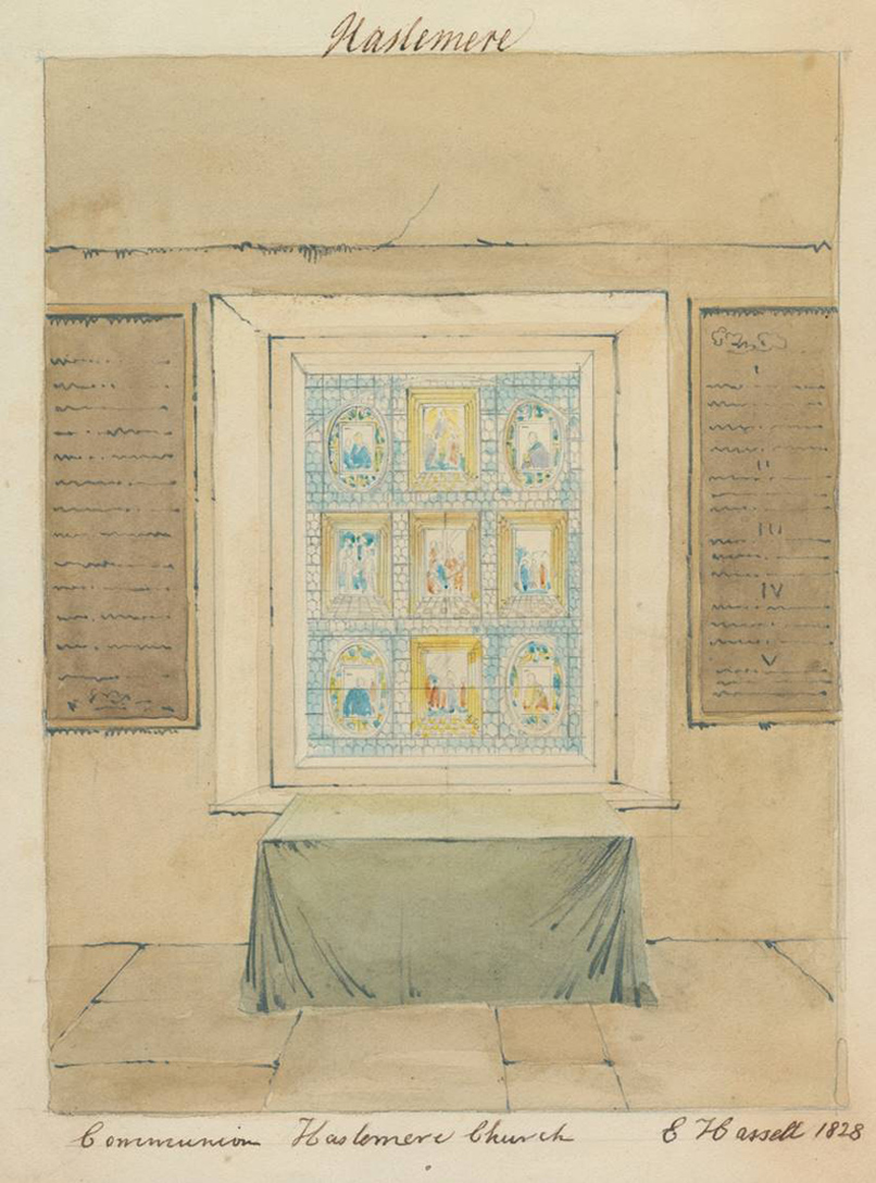 Following the death of Sanderson and his wife, the glass was inherited by their daughter Mary Ann and given to St Bartholomew's Church, Haslemere, on or shortly after her marriage in 1797 to the Rev Robert Price.